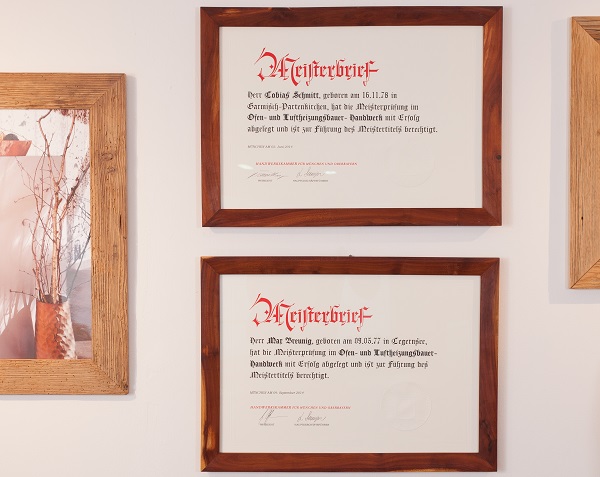 Wir, Tobias Schmitt und Max Breunig haben gemeinsam den Beruf des Kachelofen- und Luftheizungsbauers erlernt und auch gemeinsam die Meisterschule absolviert.